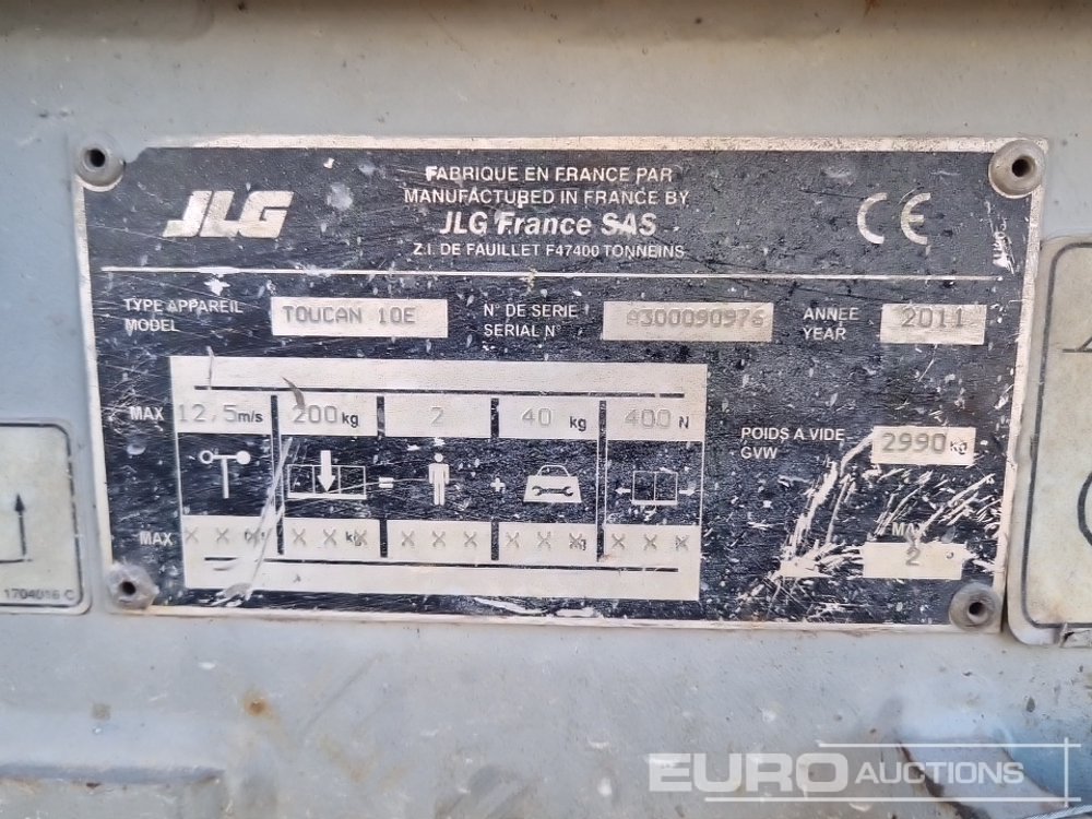 2011 JLG TOUCAN – 10E Electric Vertical Boom Lift (Meter Reading: 944 Hours) – 0300090976