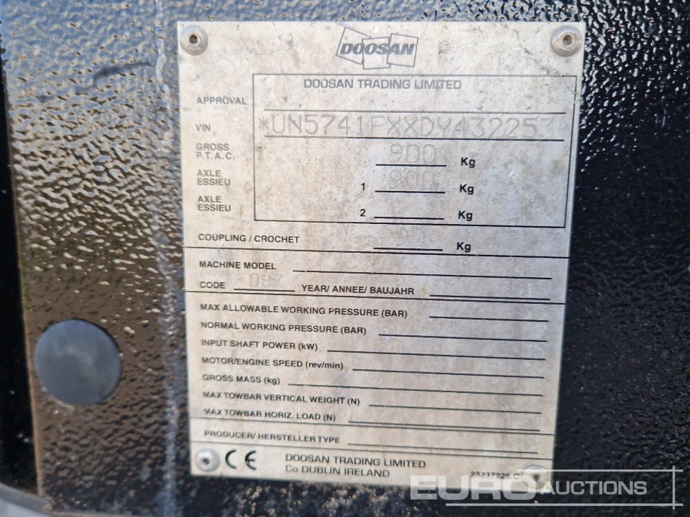 2013 Doosan 7/41 125CFM Single Axle Comparessor – UN5741FXXDY432253