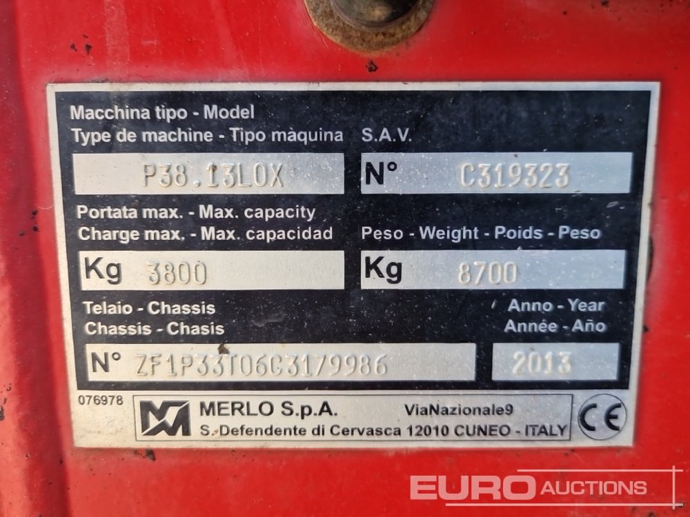 2013 Merlo P38.13 LOX Turbo Telehandler, Stabilisers, Sway, Forks, WLI – ZF1P33T06C3179986