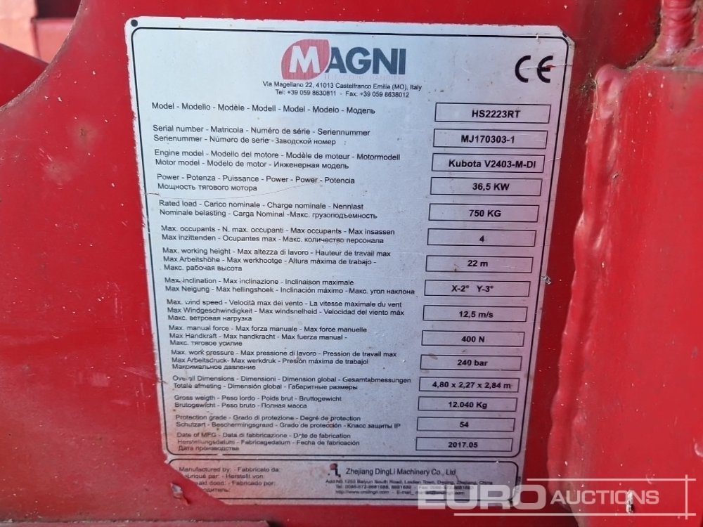 2017 Magni HS2223RT Diesel Scissors Lift, Stabilisers – MJ170303-1