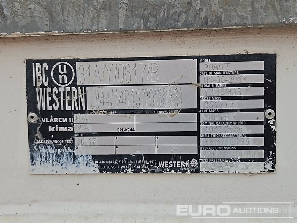 2017 Western 20ART 1940 Litre Static Bunded Fuel Bowser, Petrol Pump, Flow Meter – 17002698