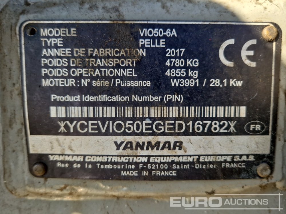 2017 Yanmar ViO50-6A Rubber Tracks, Blade, Offset, CV, Piped, QH, Bucket – YCEVIO50EGED16782