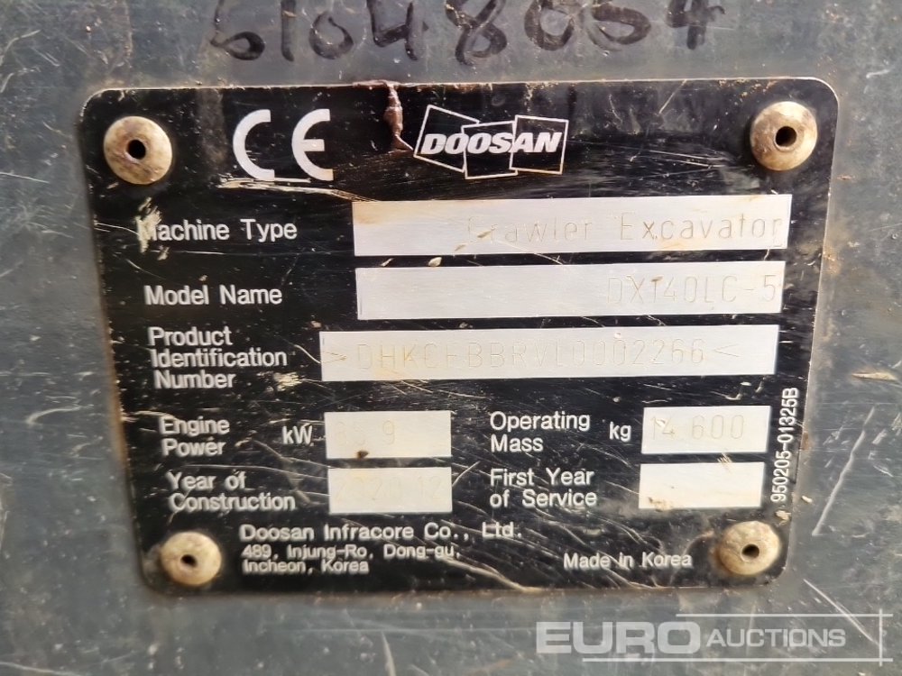 2020 Doosan DX140LC-5 700mm Pads, CV, QH, Piped, Reverse Camera, Side Camera, A/C – DHKCEBBRVL0002266