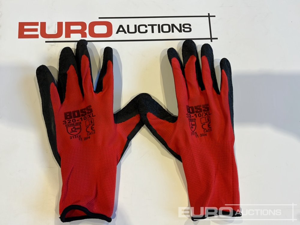 Unused Boss 320 Work Gloves, Red Polyester Lining, Latex Coating, Size 10 (XL) (36 pairs of) – 100360119